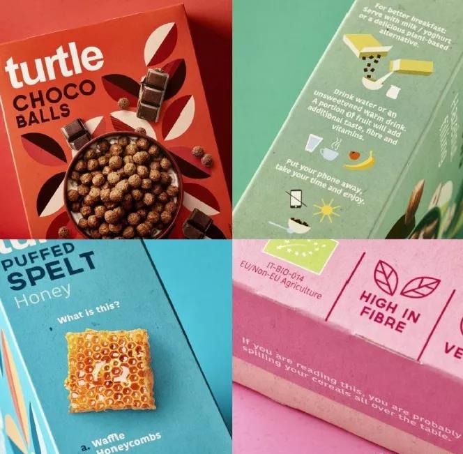 利用有沖擊力的視覺(jué)色彩,包裝的顏色同時(shí)與谷物的色彩相對(duì)應(yīng)。