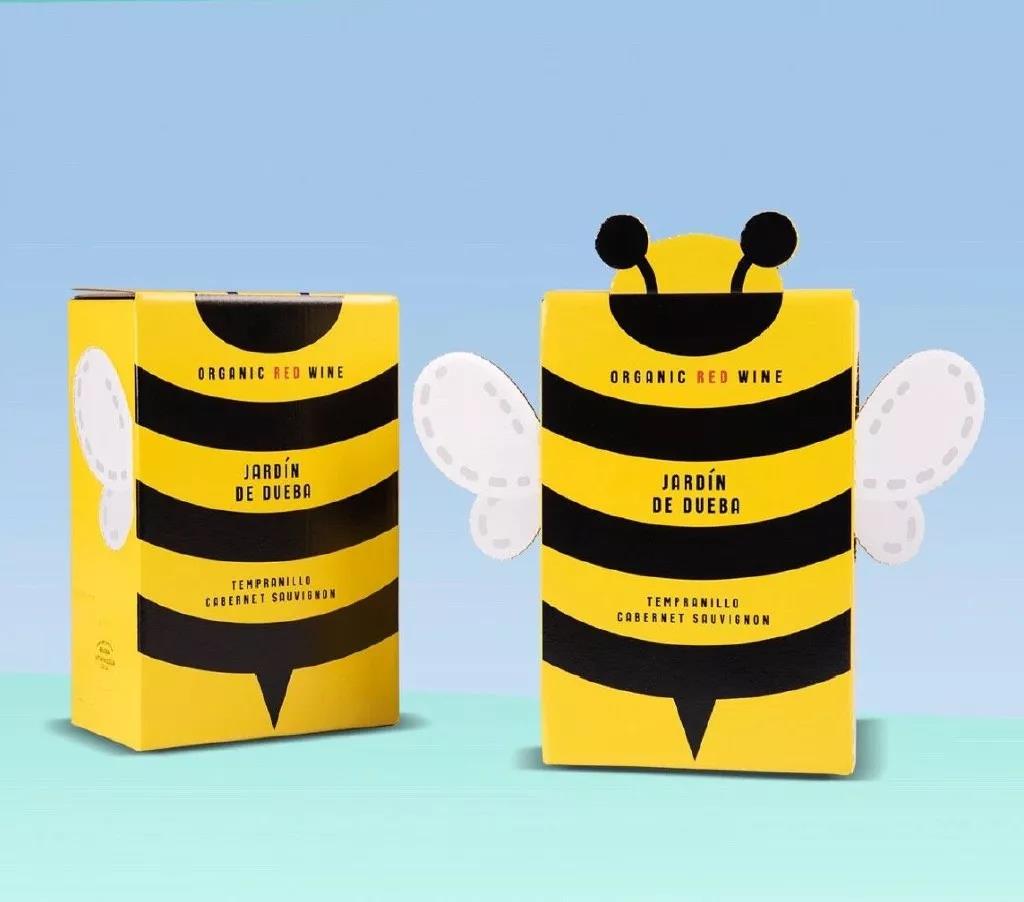 采用了蜜蜂造型的紙盒作為葡萄酒容器,以示蜜蜂在普通生長(zhǎng)中的重要性。